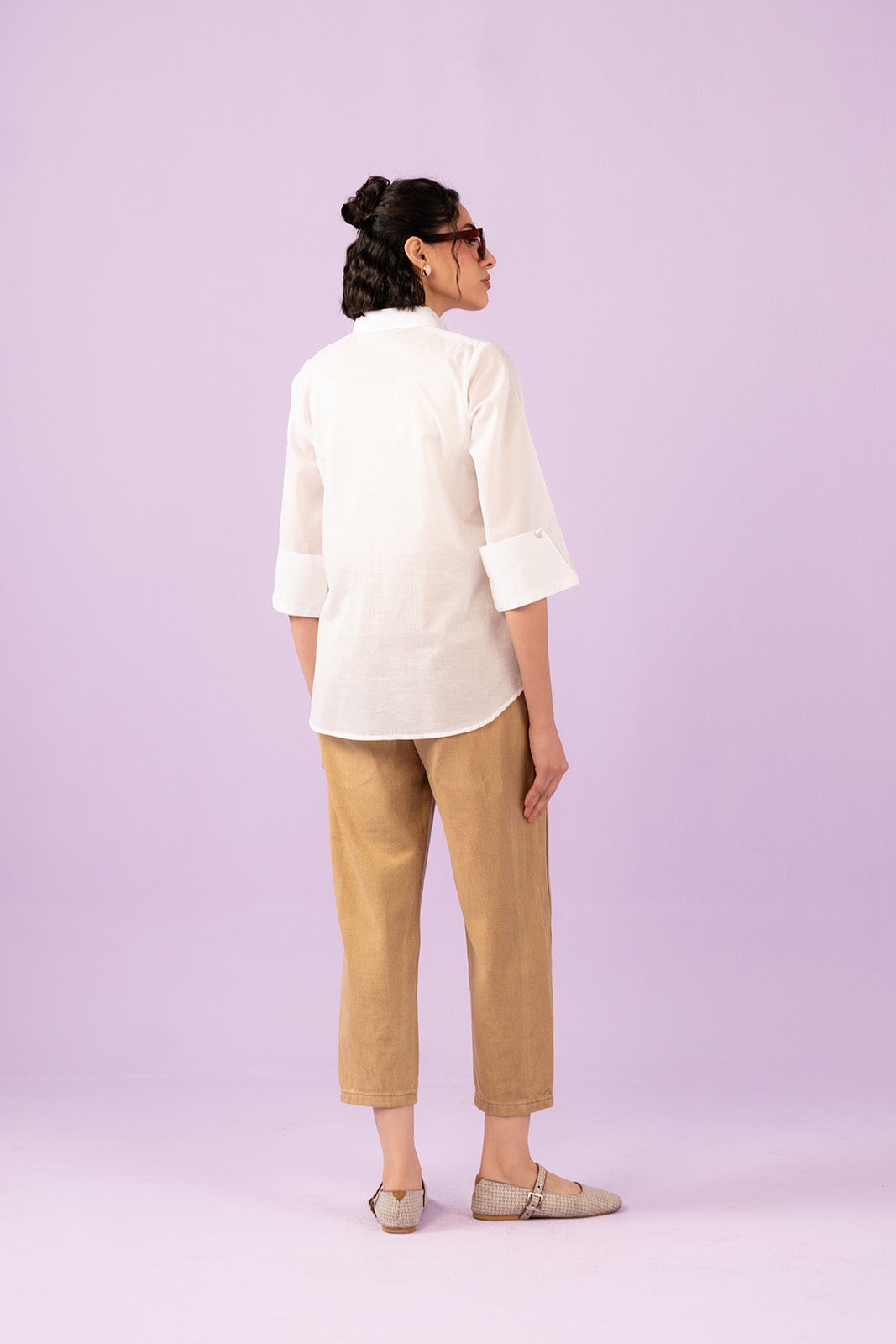 Article Name: MINKColor: WhiteFabric: LawnPieces: 1 Piece ShirtWhite lawn button-down shirt detailed with shell buttons on the placket.