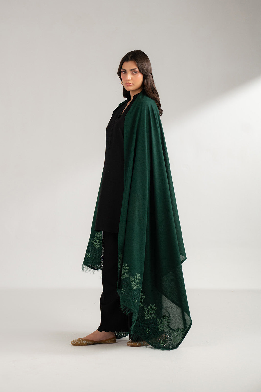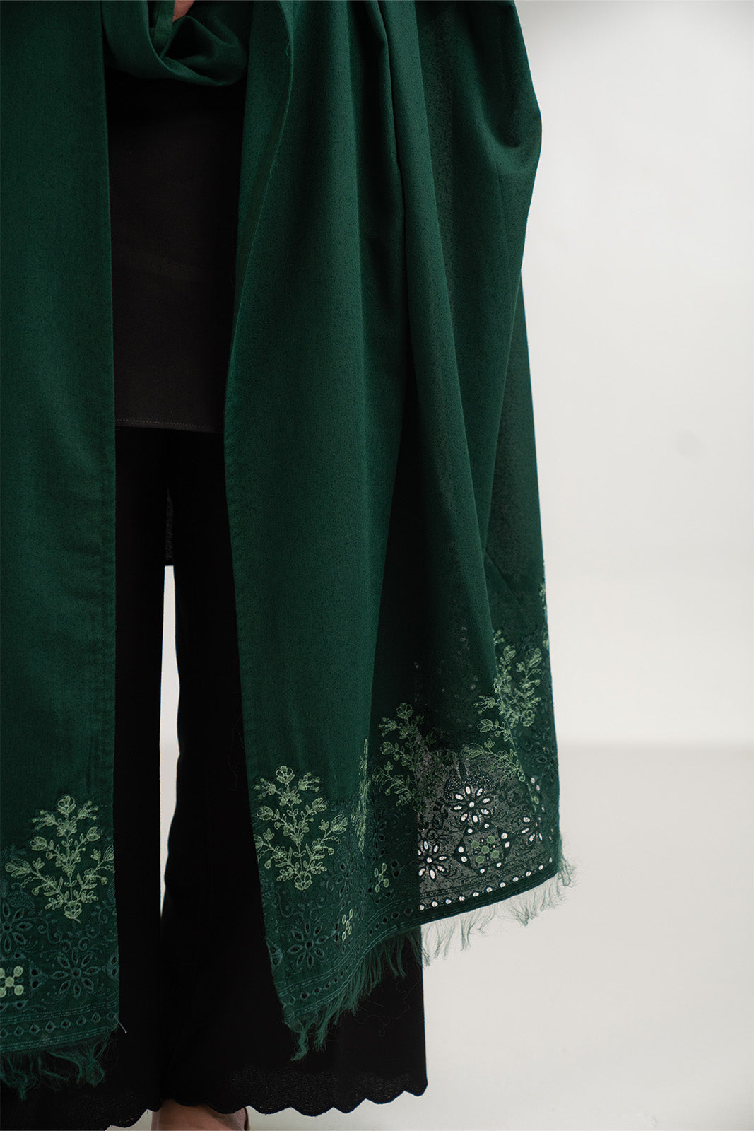 Article Name: RAINA SH Color: Green Fabric: Lawn Karandi Pieces: 1 Piece Shawl Green lawn karandi shawl detailed with elegant embroidery on both pallus.
