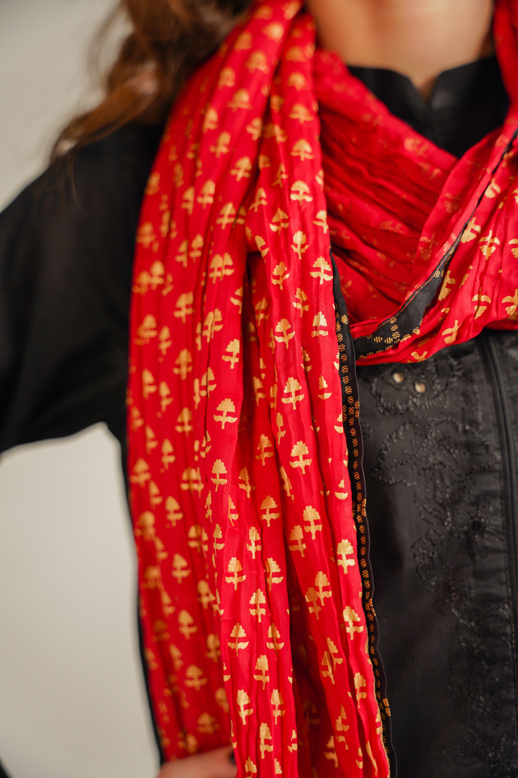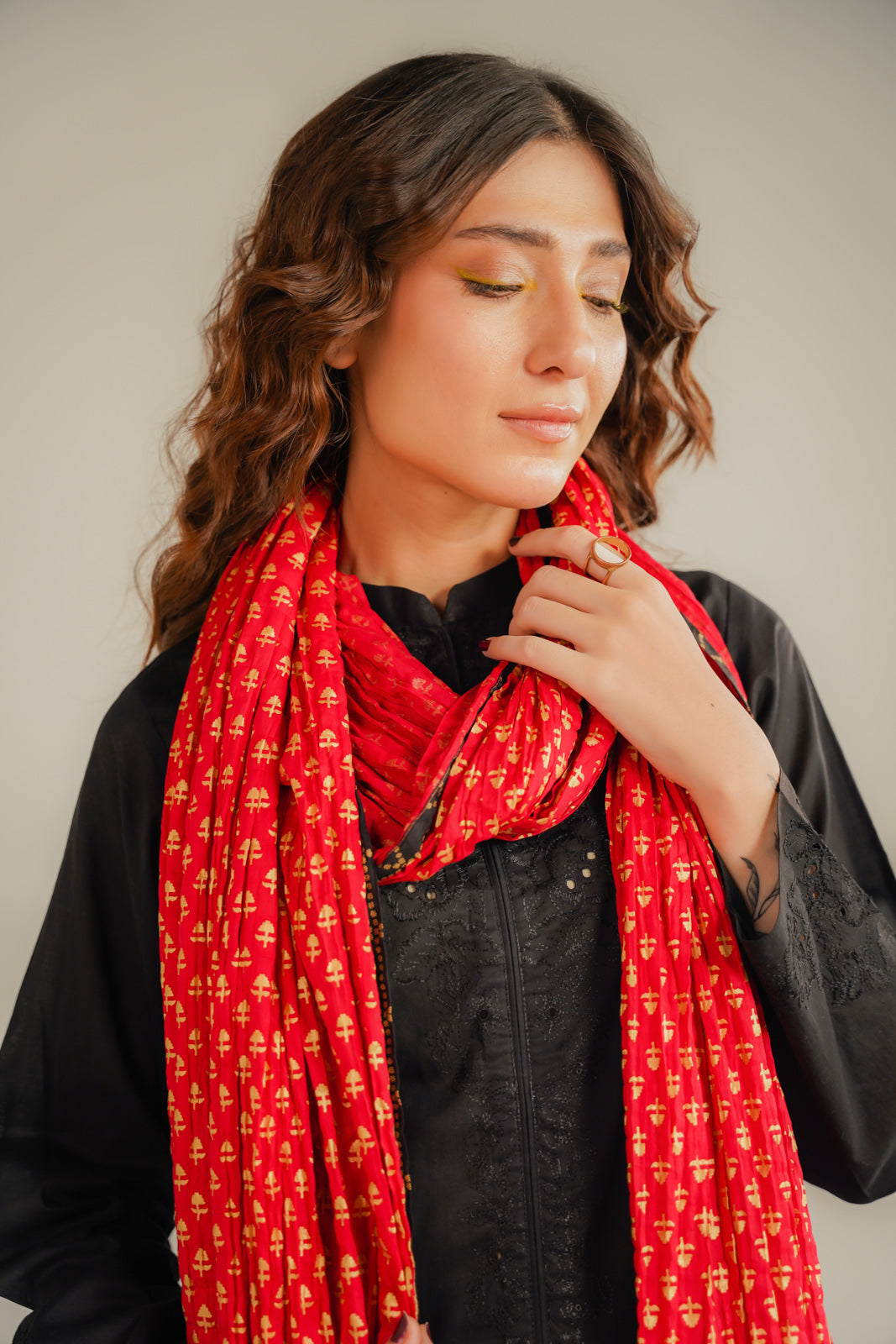 Article Name: MIRAL STColor: RedFabric: LawnPieces: 1 Piece StolePrinted dupatta along with gota embellishment pallu.