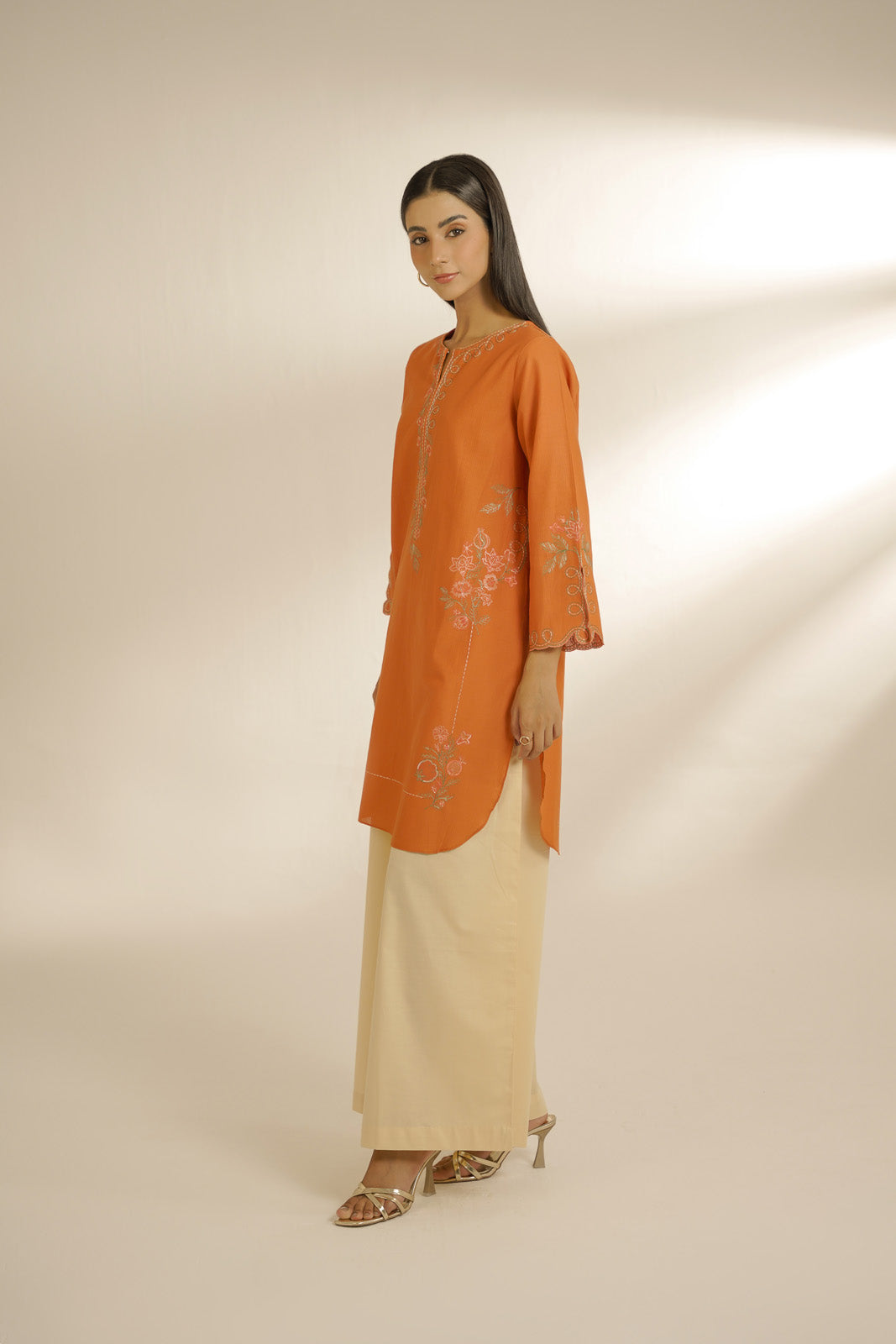 DetailsArticle Name: CYBER YELLOWColor: YellowFabric: Khaddi NetPieces: 3 Piece SuitLight yellow khaddi net embroidered shirt paired with hand crafted printed dupatta finished with tassels on corners paired up with silk culottes.