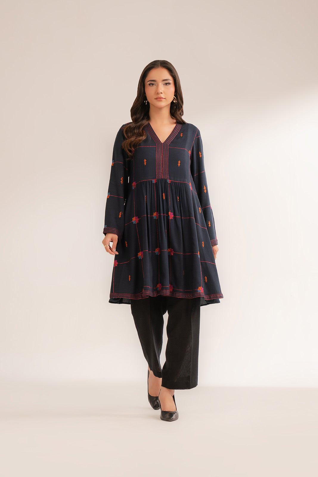 Article Name: ARHAAB Q Color: Navy Blue Fabric: Lawn Karandi Pieces: 1 Piece Shirt Complete your outfit look with our navy blue top detailed with embroidery.