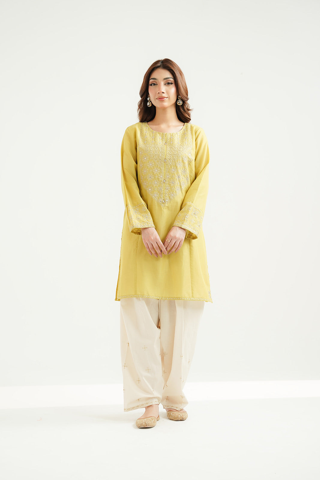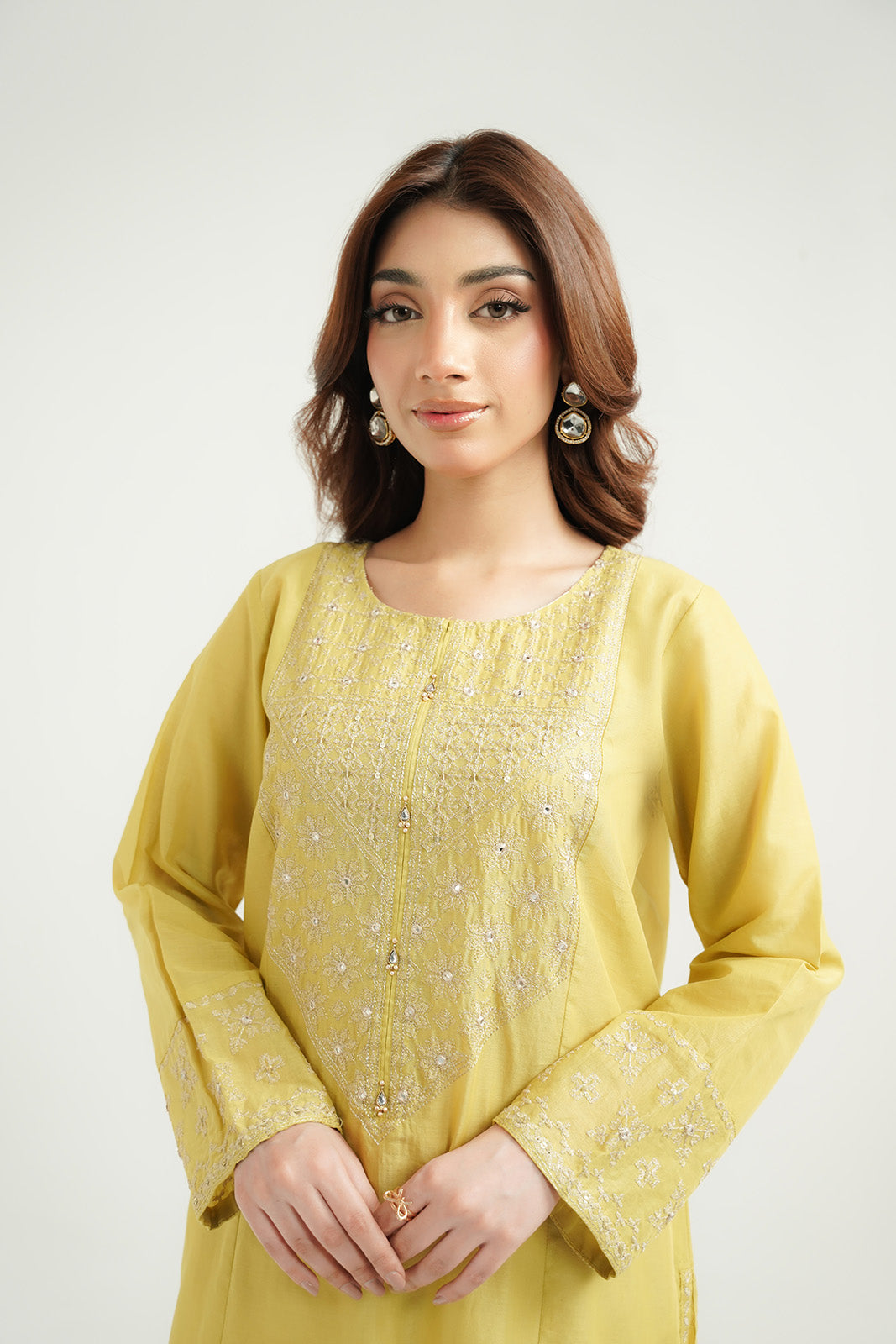 Article Name: ZIMAL MColor: LimeFabric: LawnPieces: 2 Piece Shirt/Bottom2 Piece lawn embroidered shirt detailed embroidery on neckline and sleeves paired with embroidered shalwar.