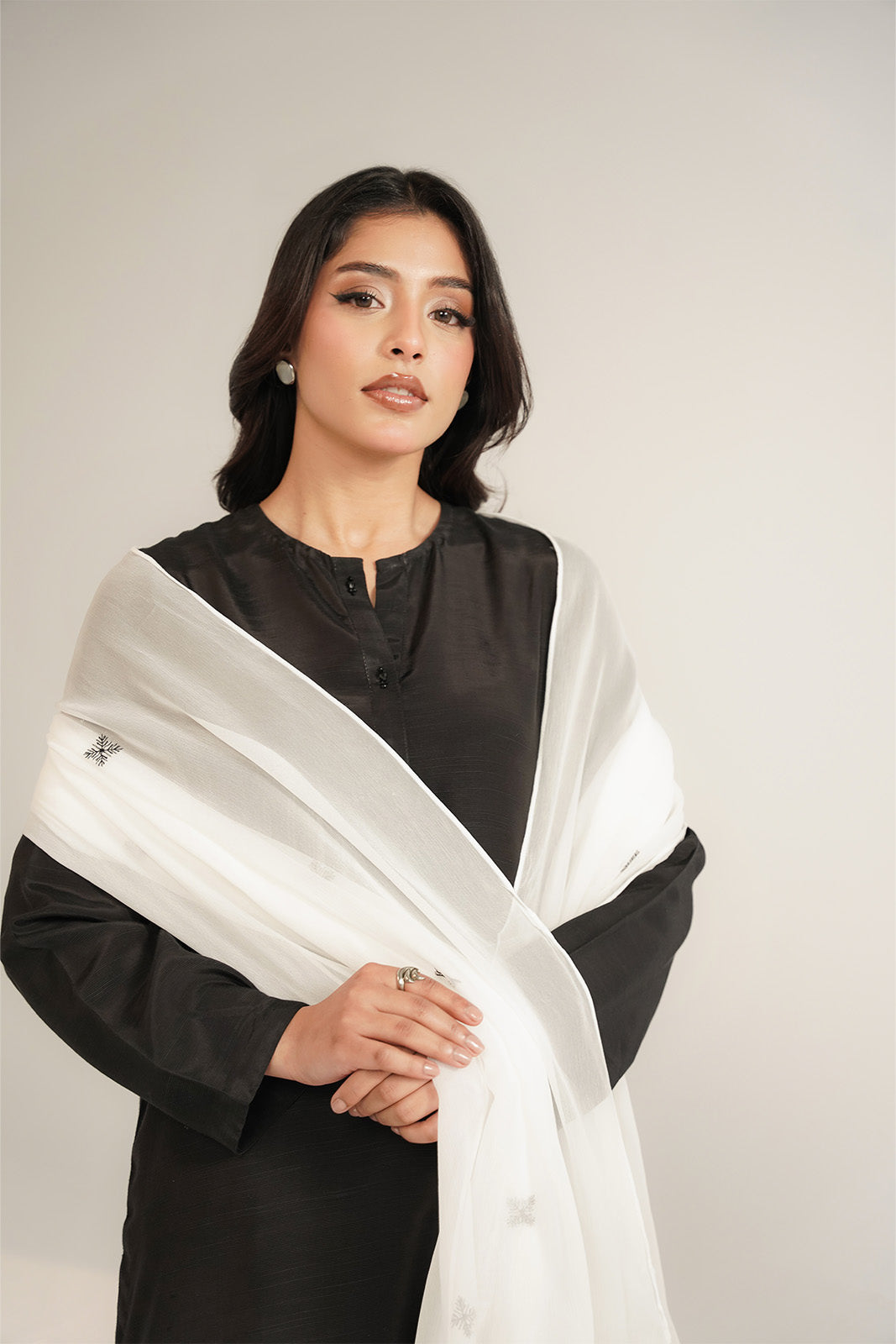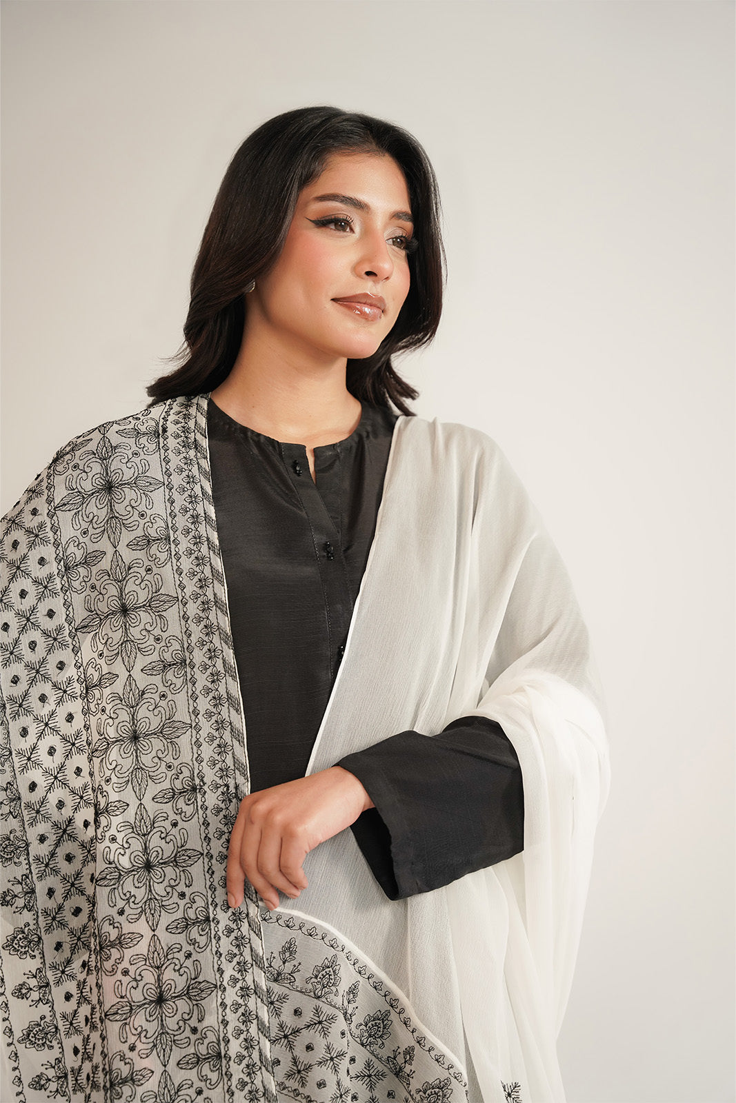 Article Name: OREO Color: White Fabric: Chiffon Pieces: 1 Piece Dupatta Delicately detailed to add a graceful touch to your outfit enhance your look with timeless contrast.