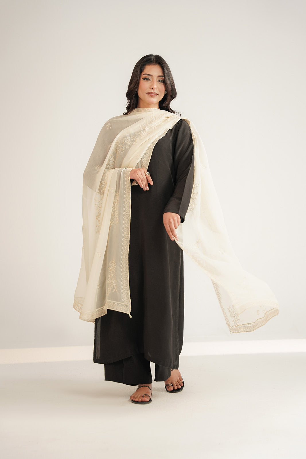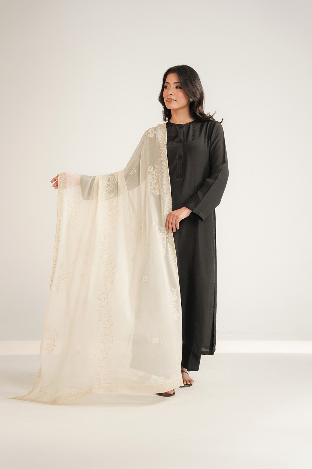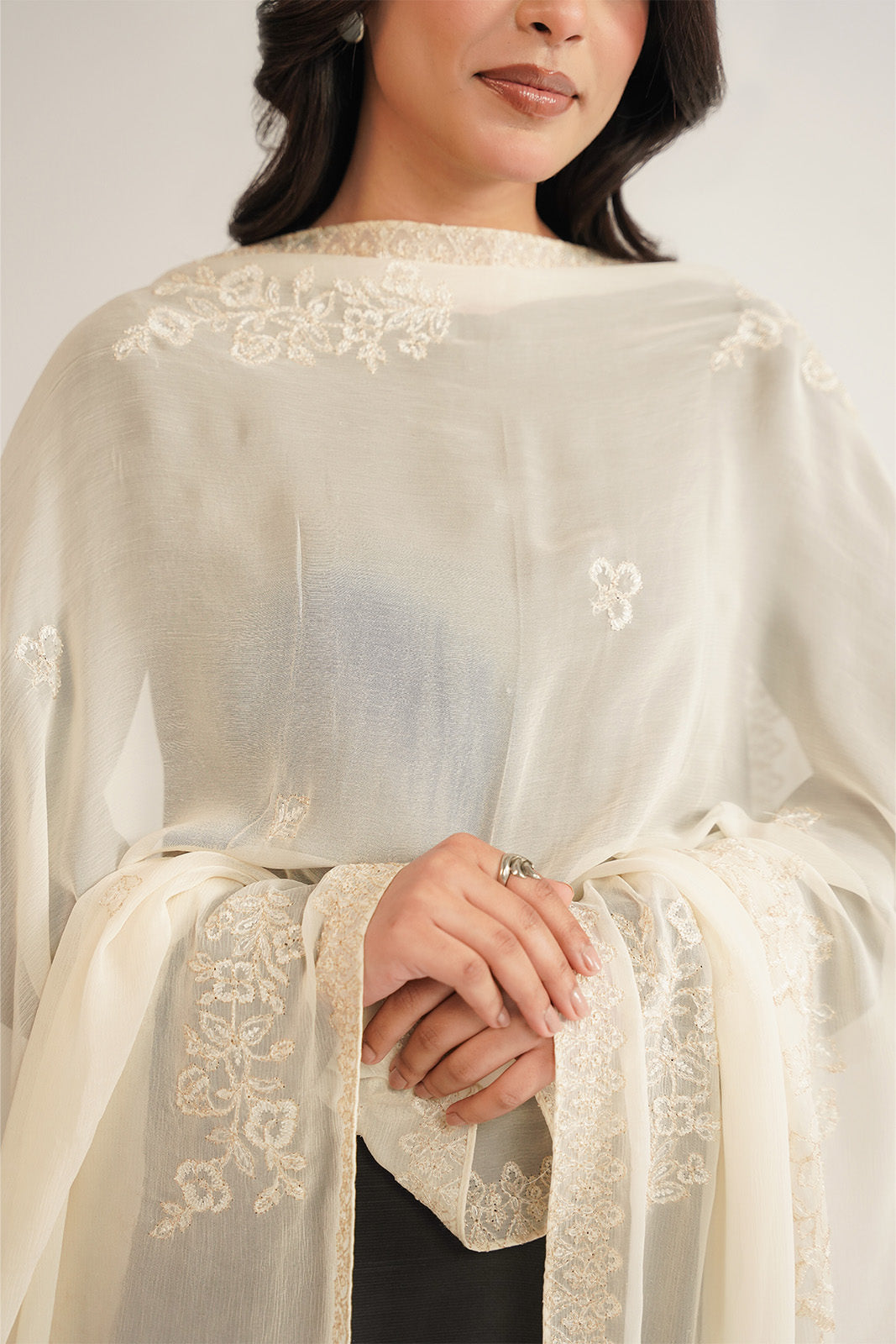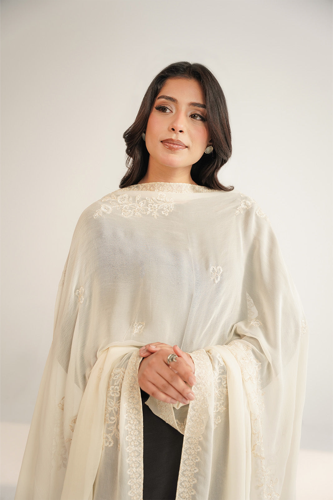 Article Name: IVORY DHAGA D Color: Ivory Fabric: Chiffon Pieces: 1 Piece Dupatta An elegant ivory embroidered dupatta delicately detailed to add a refined layer to your outfit.