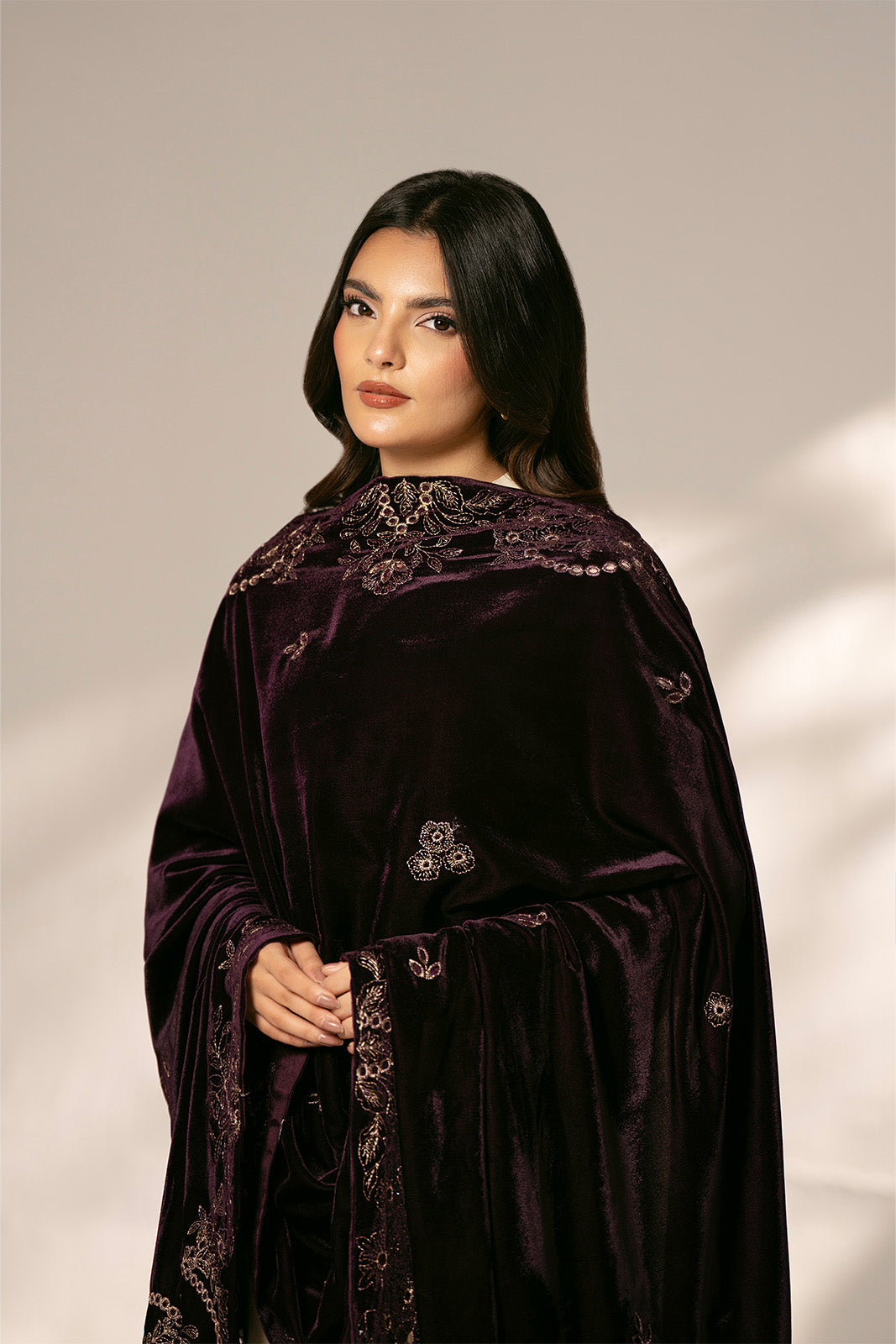 Article Name: SAJNI SH Color: Wine Fabric: Micro Velvet Pieces: 1 Piece Shawl Wrap yourself in timeless elegance, adorned with luxurious embroidery adds a touch of glamour to your festive look.