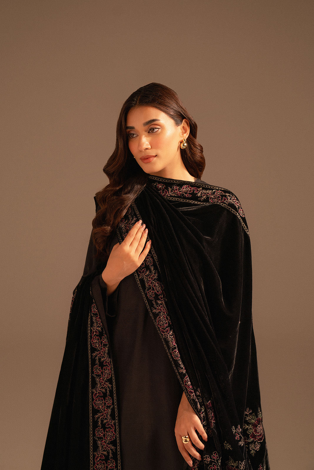 Article Name: BLACK DIAMOND S H Color: Black Fabric: Velvet Pieces: 1 Piece Shawl A classic black shawl that embroideries sophistication and timeless grace.
