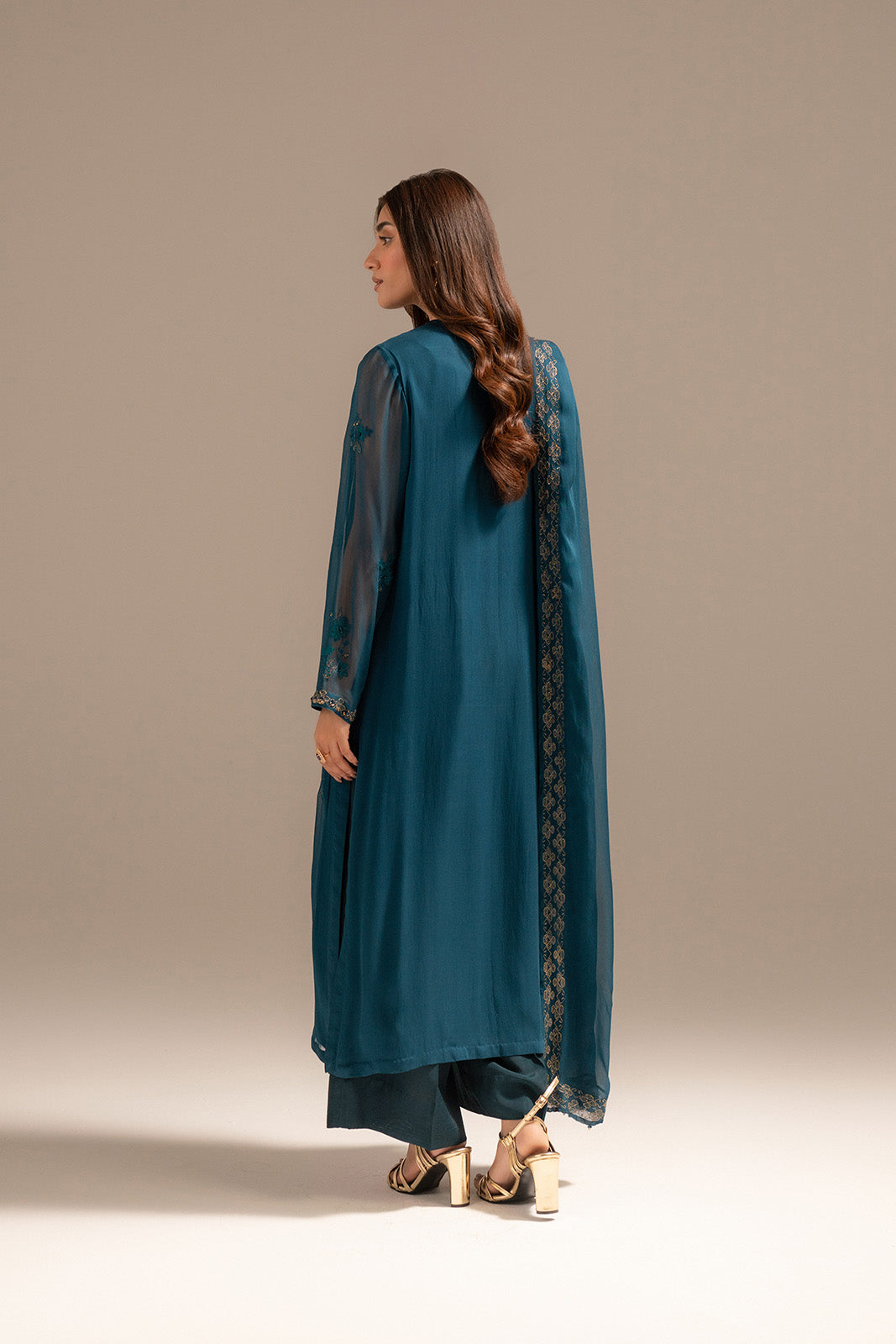 DetailsArticle Name: BUNCHESColor: BlueFabric: ChiffonPieces: 3 Piece SuitDeep blue chiffon outfit floral embroidered with motif, hand embellished with crystals and beads, paired with silk culottes.