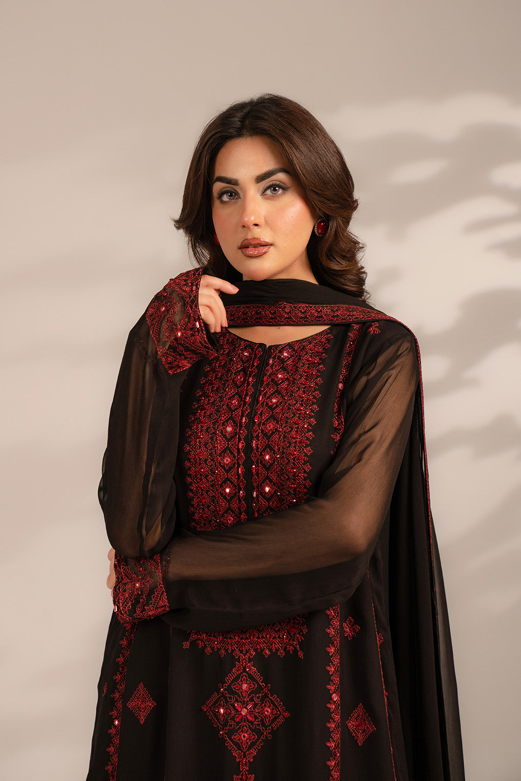 Article Name: TRADITIONAL BLACK Color: Black Fabric: Chiffon Pieces: 3 Piece Suit This stunning assemble combines ethnic charm & elegance making it ideal for all types of gatherings for a timeless look.