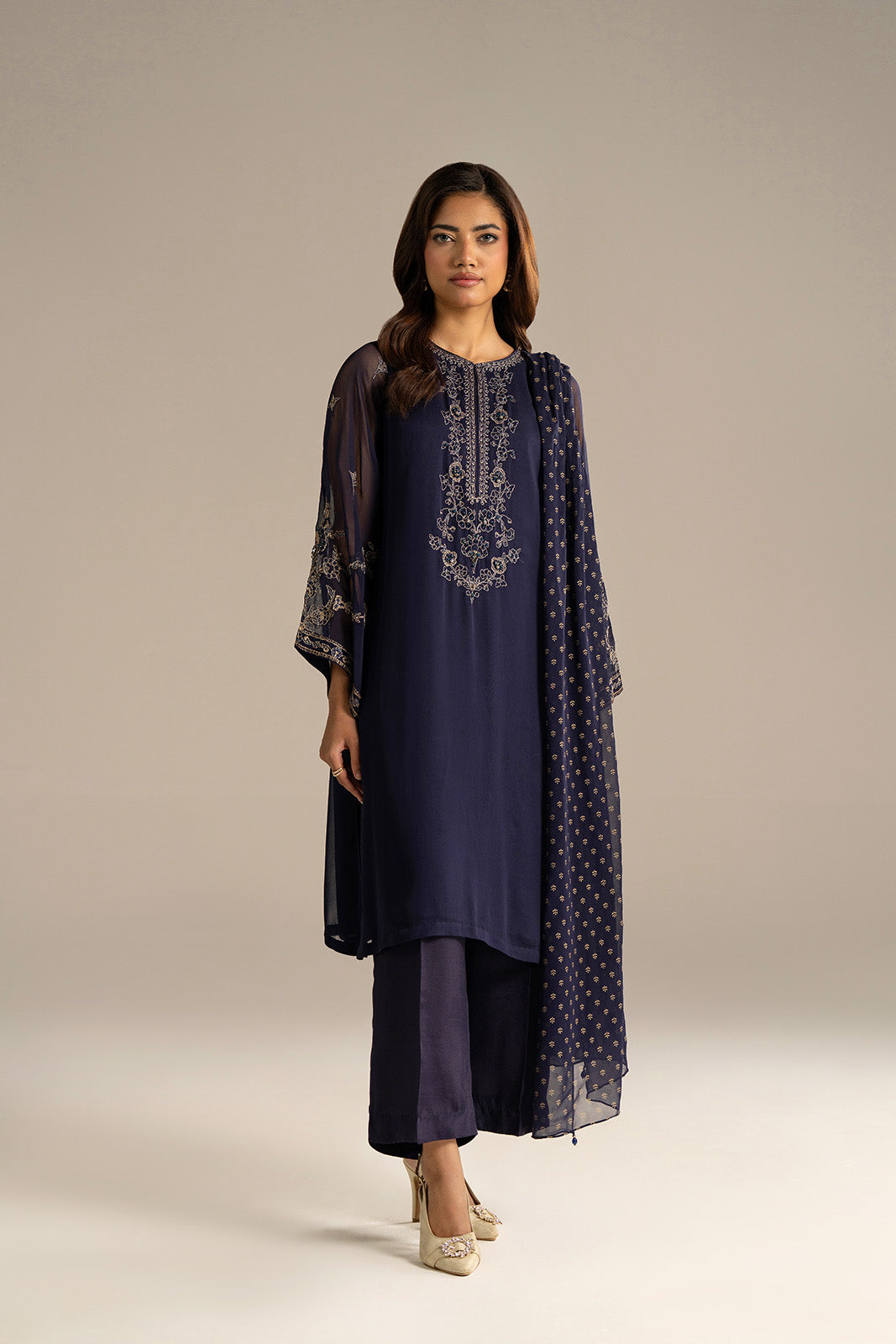 DetailsArticle Name: BLUE SEA ZColor: Navy BlueFabric: ChiffonPieces: 3 Piece SuitTimeless navy-blue dress designed for effortless sophistication its deep rich hue adds elegance to any occasion.