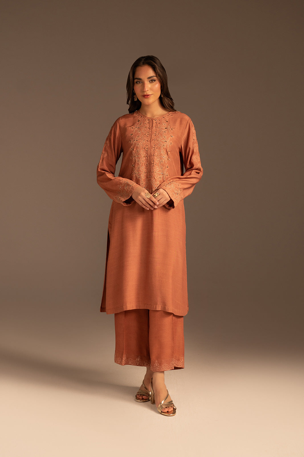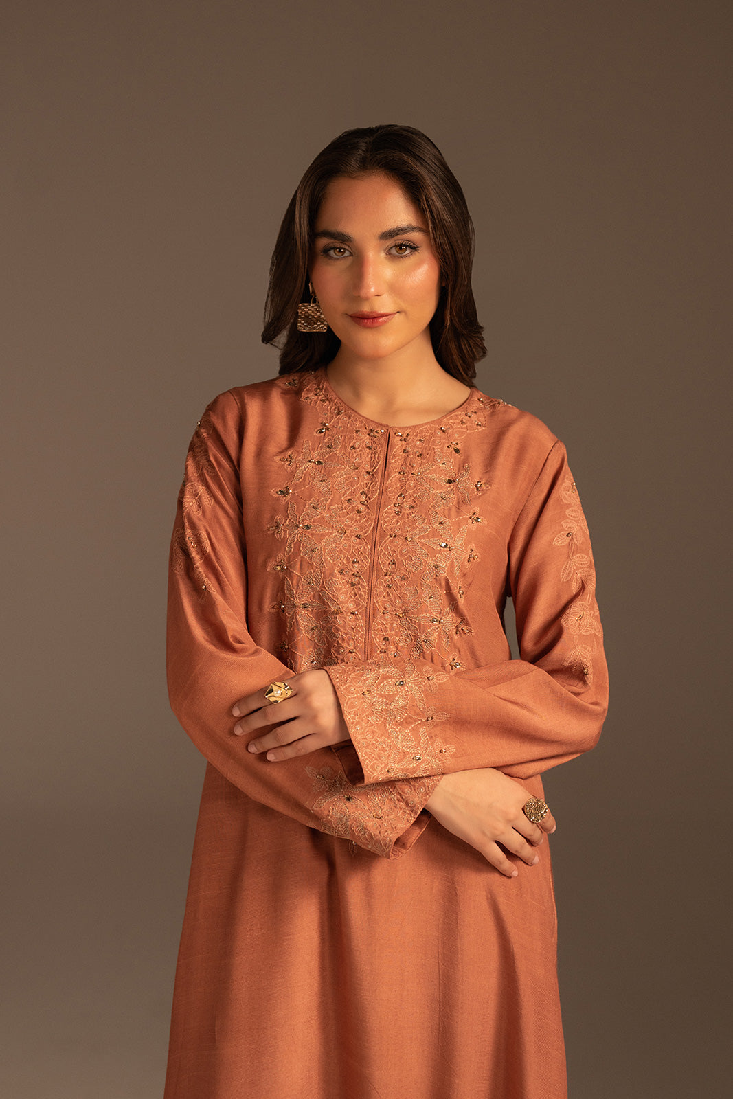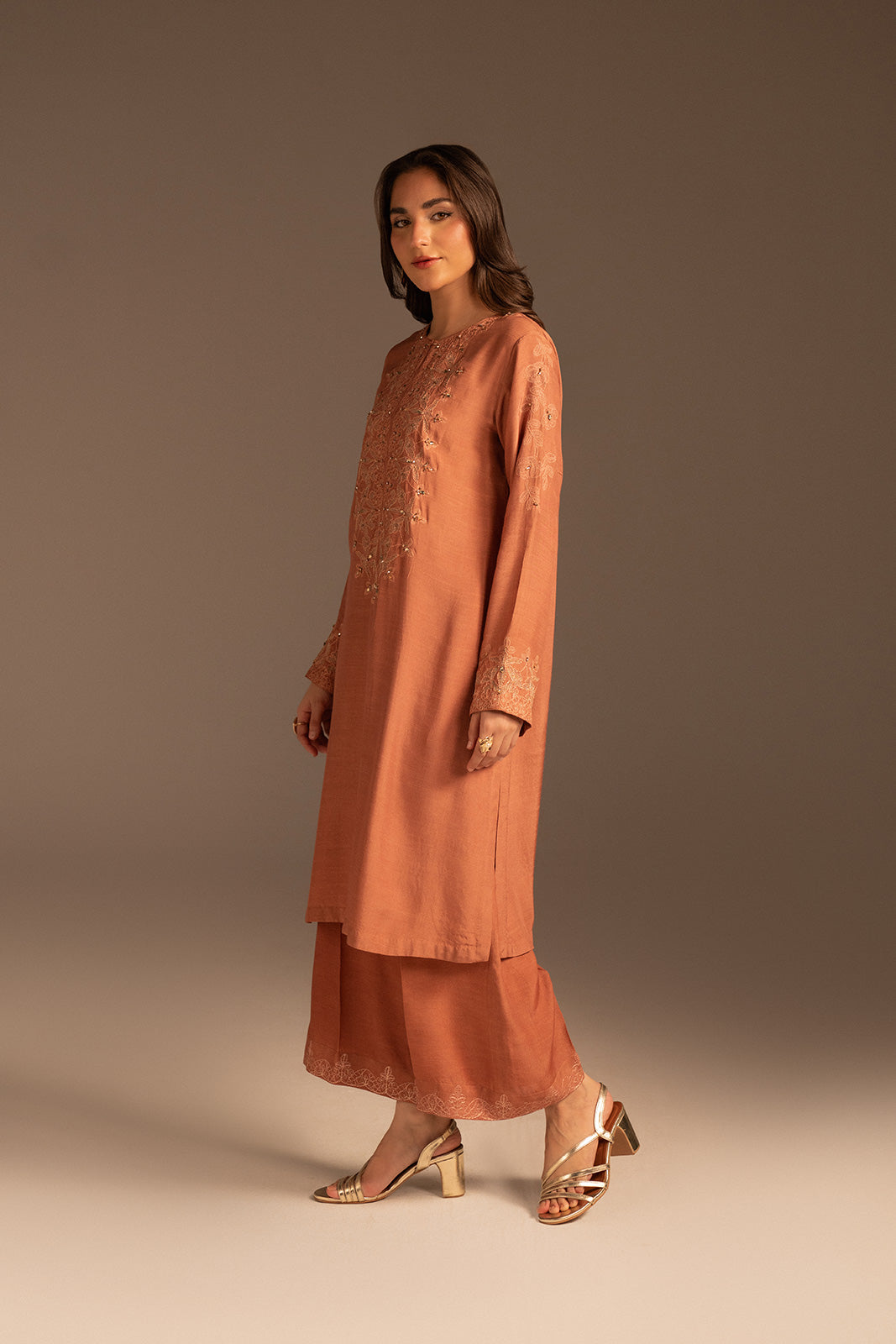 Article Name: DUSTY MINK Color: Tea Pink Fabric: Raw Silk Pieces: 2 Piece Shirt/Bottom A graceful tea pink dress designed with timeless elegance making it for perfect for both casual and formal occasion.