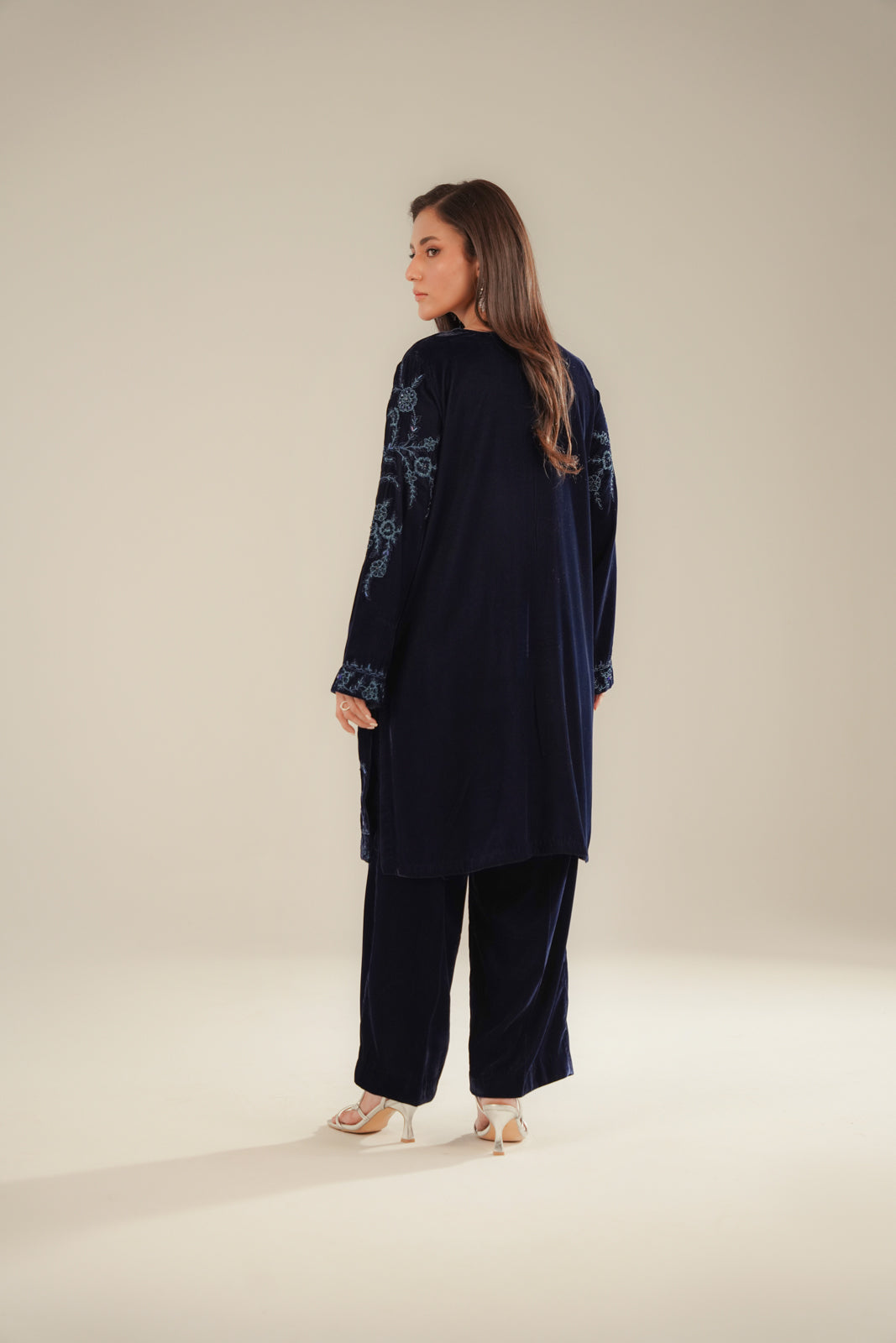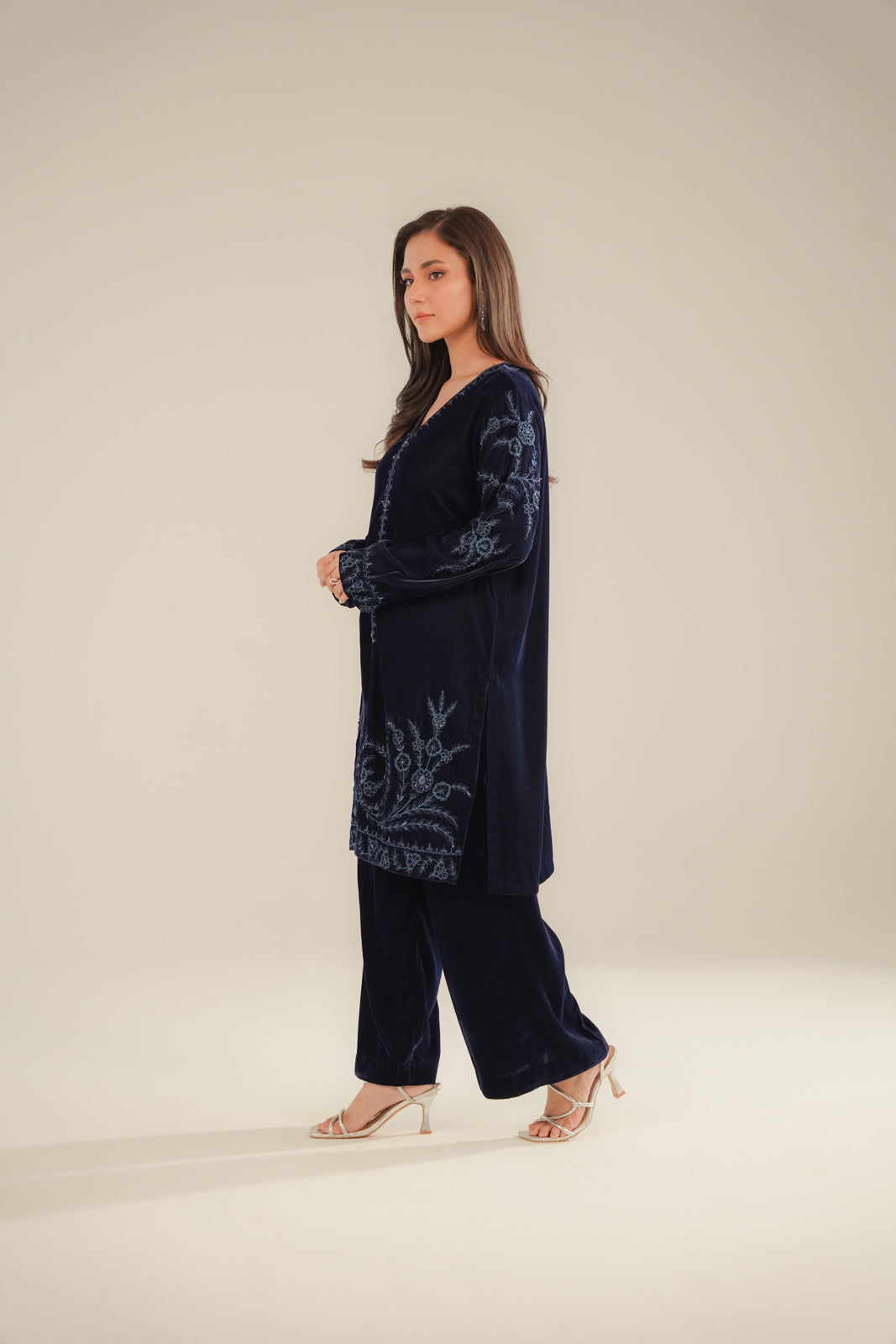 DetailsArticle Name: MIDNIGHT BLUESColor: BlueFabric: VelvetPieces: 2 Piece Shirt/BottomImmerse yourself in the allure of midnight blue velvet making the perfect choice for winter evenings.