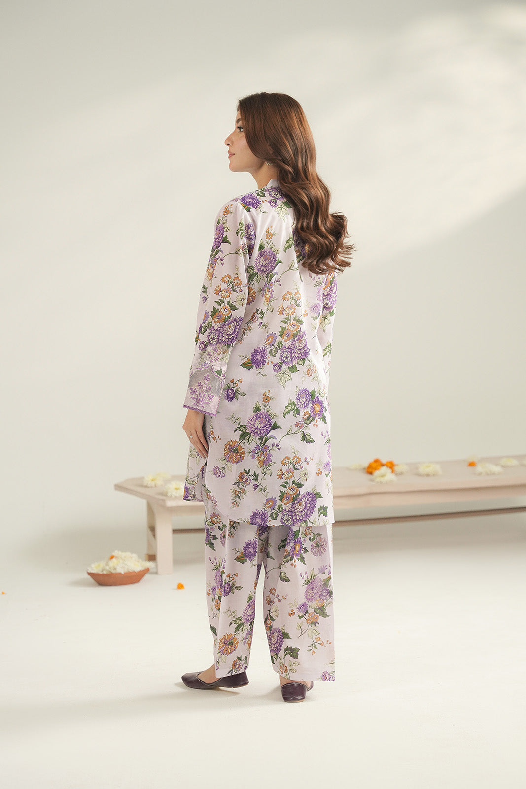 DetailsArticle Name: AINOOR PColor: Off WhiteFabric: Printed LawnPieces: 2 Piece Shirt/BottomOff White lawn printed 2-piece suit detailed with scallop on sleeves & paired with culottes.